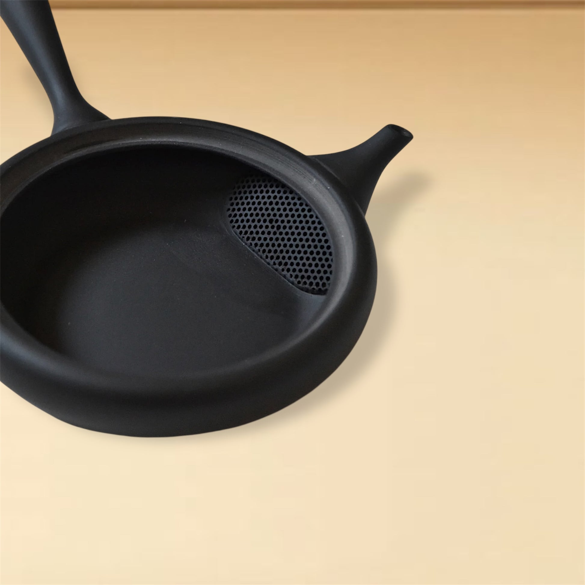 Its signature flat, low-slung silhouette allows tea leaves to unfurl evenly, promoting a nuanced, full-bodied infusion. The interior strainer, meticulously pierced with countless fine holes, ensures an effortless and clean pour—even when brewing finely cut teas—combining functionality with understated beauty.
